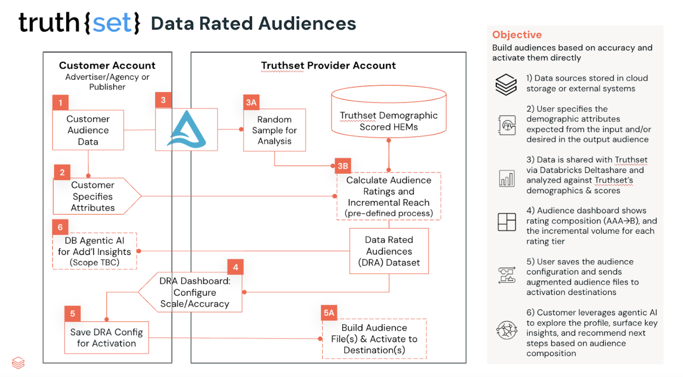 1:1 Direct Activation: Truthset’s integration with Databricks Clean Rooms supports secure activation into identity frameworks like The Trade Desk’s UID2. This maintains accuracy from creation to media activation while lowering ad-tech “tax” fees.